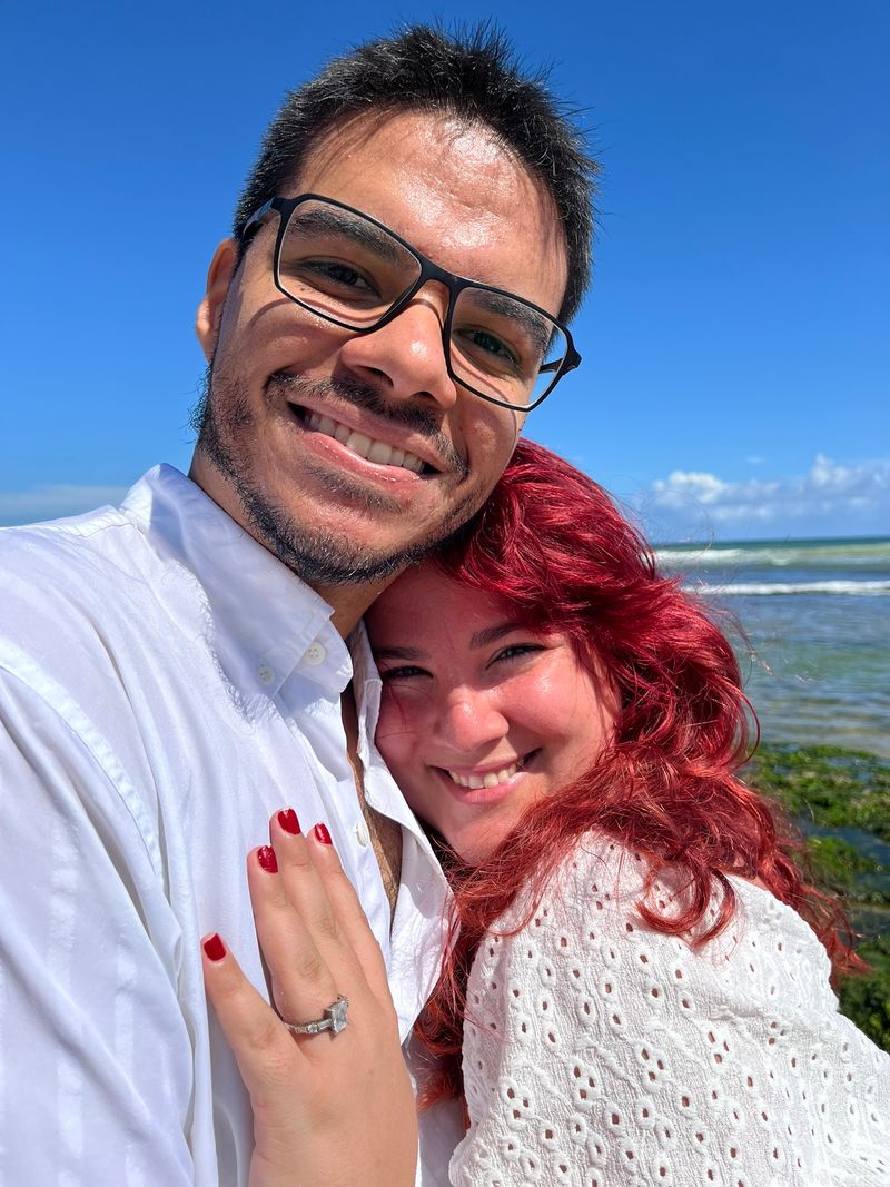 Diedre e Laís estudaram juntos na 5ª, 6ª e 7ª série. Faziam o máximo de trabalhos em dupla e eram inseparáveis no fundão da sala. Laís, a única menina que preferia andar com os meninos, encontrava naquele grupo o espaço onde podia ser quem realmente era. Diedre e Laís compartilhavam o gosto por rock, e ele, sempre muito esperto, já sabia gravar arquivos em CDs. Ela pedia para o pai comprar um CD virgem para que ele pudesse gravar as músicas — que depois escutavam juntos no recreio, dividindo um fone de ouvido sentados no corredor. A palavra conforto definia bem a presença de um para o outro. Um fato curioso: o cadarço de Diedre vivia desamarrado, e ele não se importava. Já Laís, sempre com receio de que ele tropeçasse, acabava indo lá e amarrando. No 8º ano, Laís precisou mudar de escola, e a partir daí só se encontravam em eventos de cultura japonesa e shows de rock — os gostos permaneceram os mesmos. Dez anos depois, decidiram se reencontrar para colocar a conversa em dia… e vivemos juntos desde então! Em 2018, com a oportunidade de estudar em São Paulo, fomos morar juntos em Campinas, onde estamos até o momento com nossas cachorras Laka e Luna! P.S.: Reparem na foto da escola… o cadarço de Diedre está desamarrado também! rs